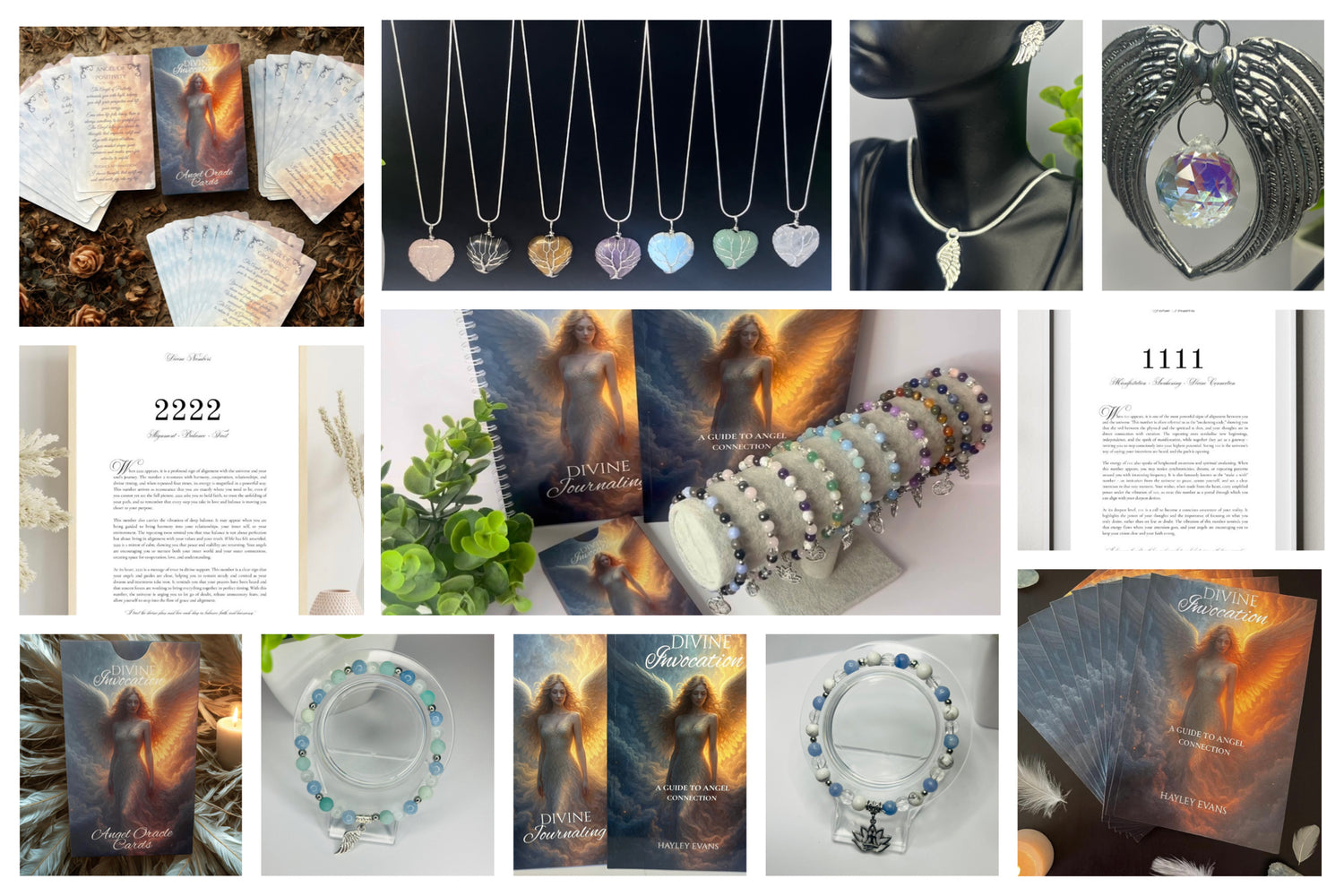 At Divine Invocation, we create handcrafted spiritual tools to help you connect with divine guidance and angelic wisdom. Each piece in our collection from Oracle cards, Journals, Crystal Healing Bracelets, Angel Number Prints, and Tarot Learning Course is thoughtfully designed to support your spiritual journey and personal transformation.